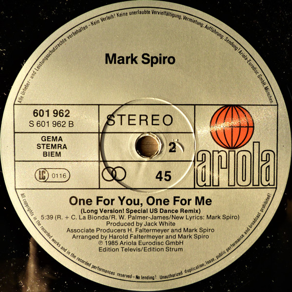 One For You, One For Me (Long Version! Special US Dance Remix)